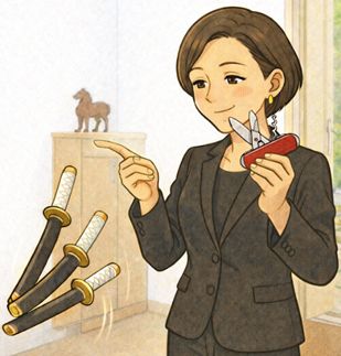 三本の重い刀を手放し、マルチツールをひとつ持つ。